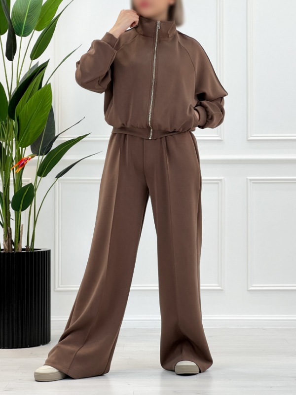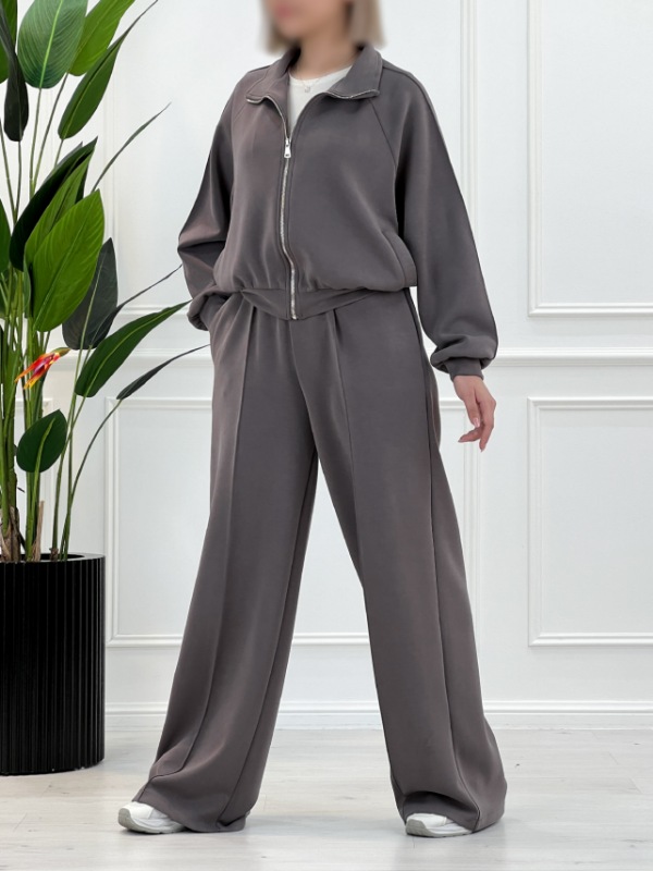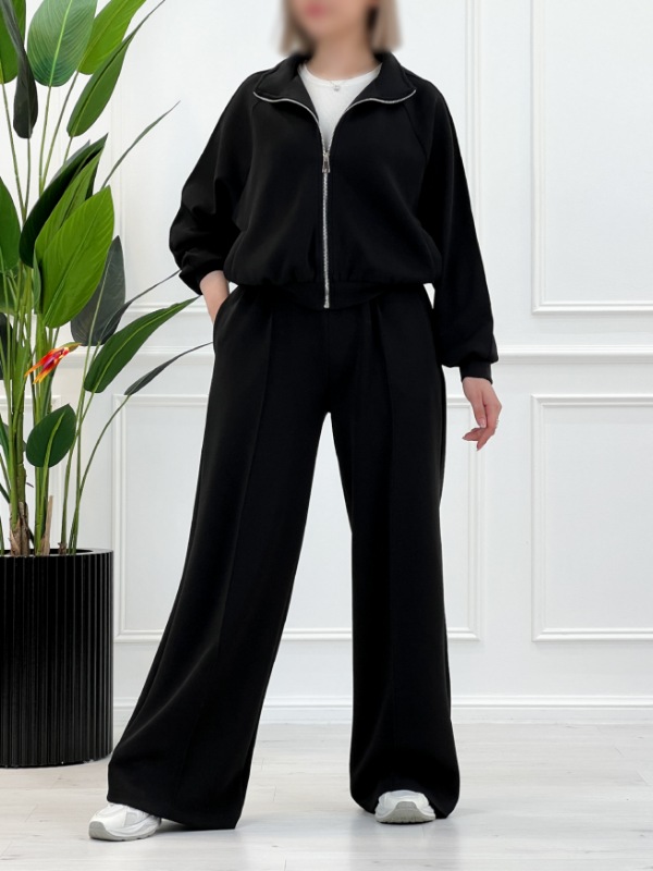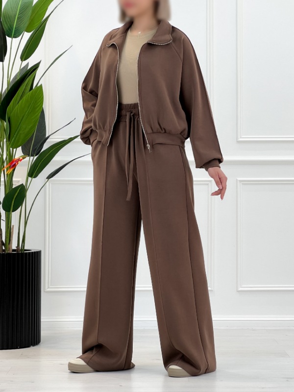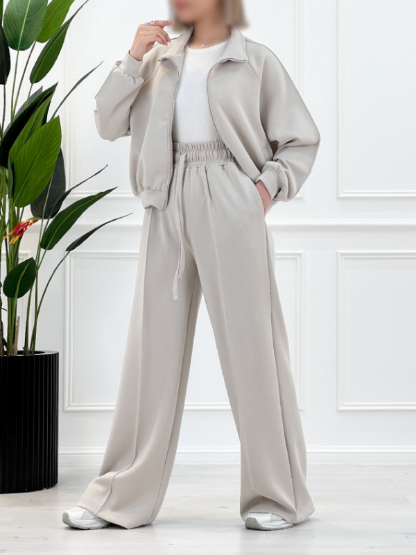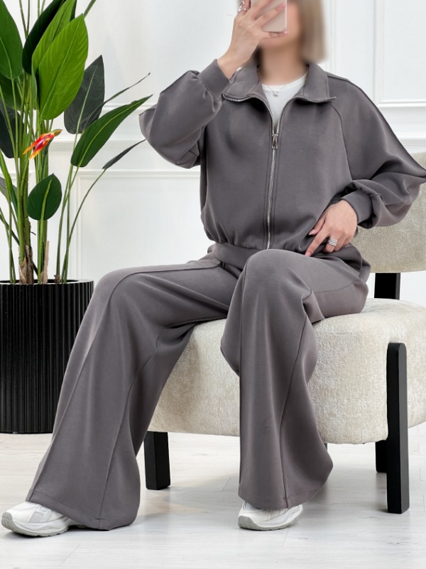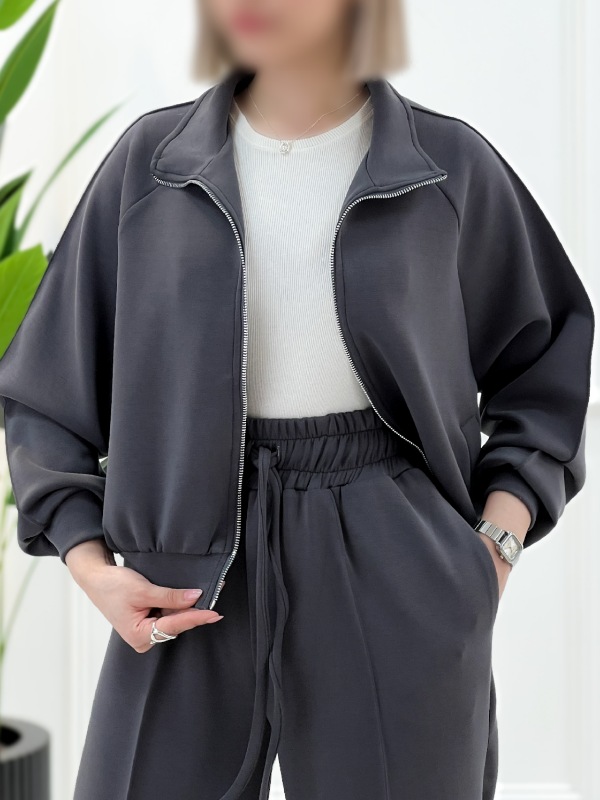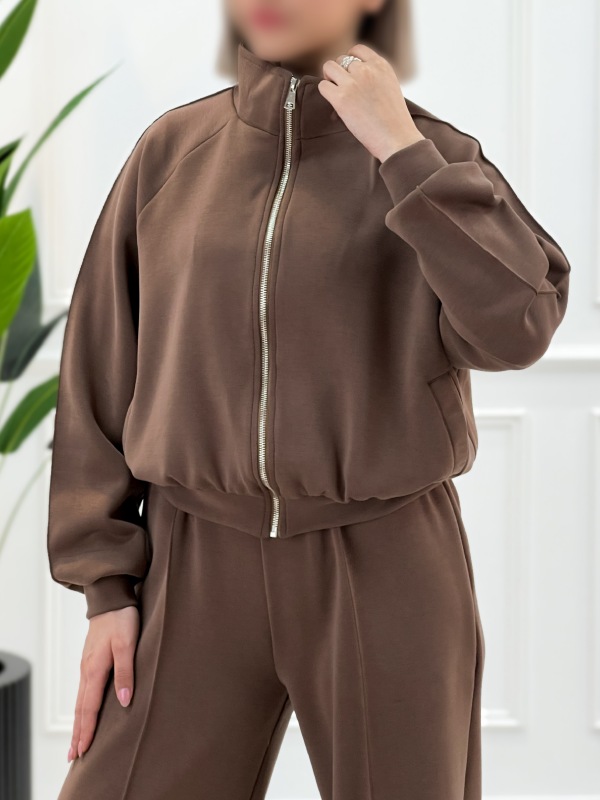 این ست از پارچه فوقالعاده باکیفیت و بادوام **اویشو** تهیه شده که هم در برابر شستشو مقاوم است و هم بافتی لطیف و راحت روی پوست دارد. **مدل بامبر کیمونو** با یقه ایستاده و زیپ جلوی لباس، ظاهری خاص و ترندی به شما میدهد. سرشانههای افتاده و آستینهای مچدار، ترکیبی بینقص از استایل روز دنیا و راحتی را برایتان فراهم کردهاند.