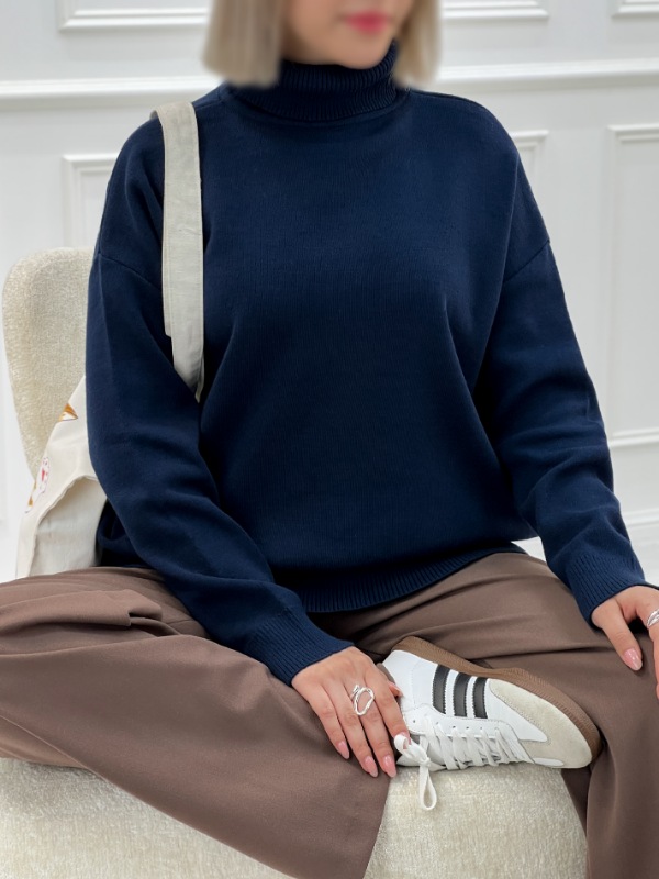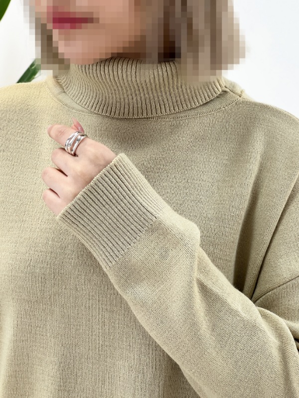 **یقه اسکی** این بلوز هم جنبهی زیبایی دارد و هم گرما را حفظ میکند. **سرشانه افتاده** و **مچ و پایین راهراه**، استایل خاصی به این لباس دادهاند که آن را از سایر مدلها متمایز میکند. **قد بلوز ۶۱ سانتیمتر** است که برای اکثر استایلها مناسب است و میتواند هم با شلوار داخل زده شود و هم آزاد استفاده شود.