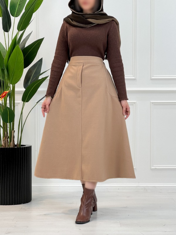 تصویر دامن آنلی زنانه و دخترانه از جنس فوتر باکیفیت، دارای کمر کشی، دو جیب مورب و رنگ‌های متنوع مناسب فصول سرد سال.