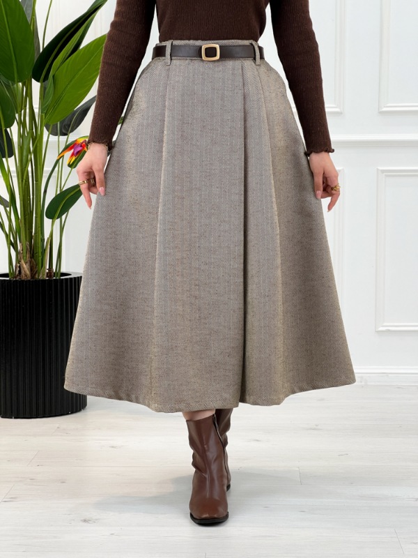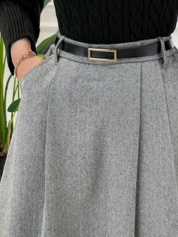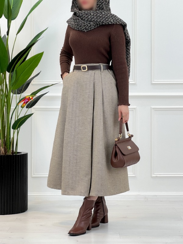 این دامن را میتوانید به راحتی با انواع بلوز بافتهای پاییزی و زمستانی، کتهای رسمی یا پالتوهای شیک ست کنید و استایلی خاص و متفاوت داشته باشید.