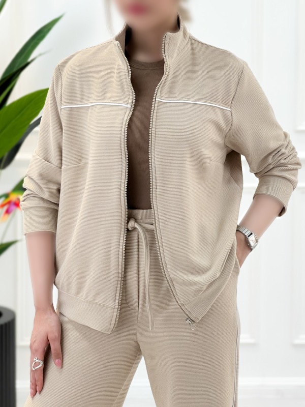 ست سویشرت و شلوار دخترانه و زنانه مدل الیزا با جنس مازراتی، طراحی زیپ‌دار، آستین مچی و شلوار بگ مناسب برای استفاده روزمره و استایل اسپرت