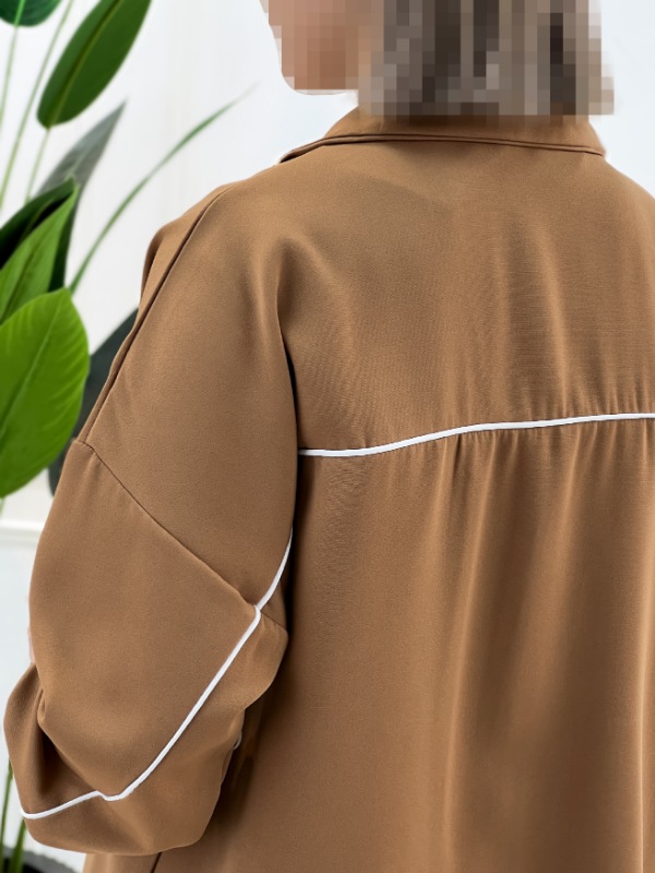 شلوار این ست به سبک بگ طراحی شده که آزادی عمل بیشتری فراهم میکند. کمر کشی، دو خط موازی در دو طرف شلوار و قد مناسب ۱۰۰ سانتیمتری، آن را به شلواری کاربردی و استایلیش برای موقعیتهای روزمره و اسپرت تبدیل کرده است.