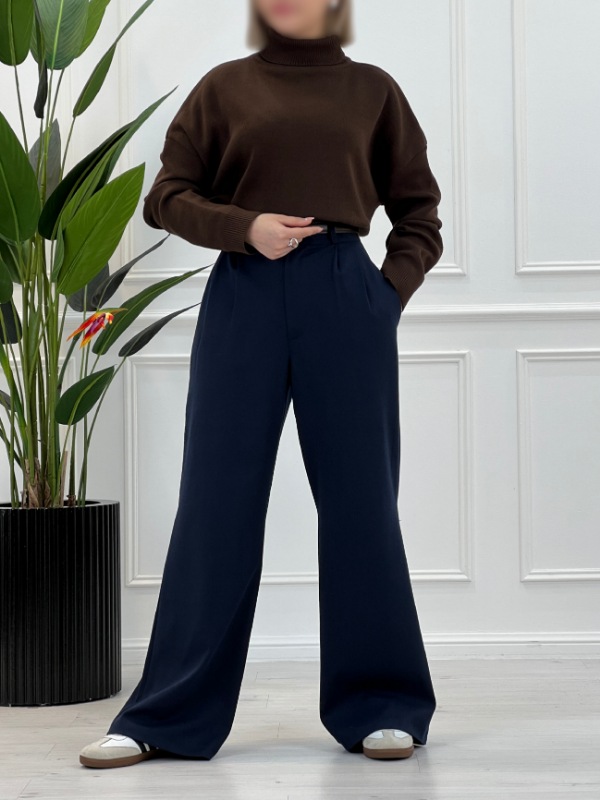 این مدل شلوار بگ با طراحی فاق مناسب و قد ۱۱۰ سانتیمتر، به راحتی با انواع کت، شومیز یا مانتو ست میشود. قسمت کمر شلوار دارای پنج پل برای کمربند است که استایل شما را حرفهایتر نشان میدهد. جلوی شلوار با یک دکمه و زیپ باز و بسته میشود که علاوه بر زیبایی، کاربردی بودن آن را افزایش میدهد.