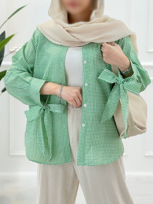 💚شومیز مانتویی آستین گره