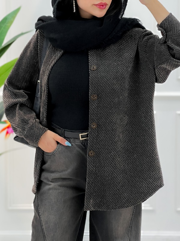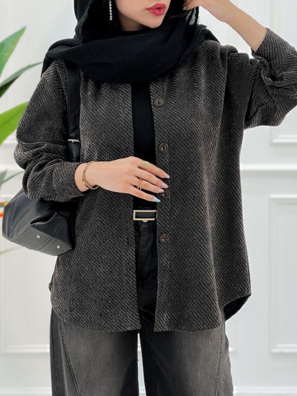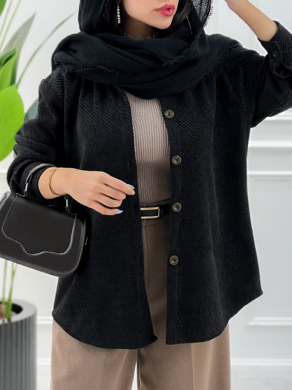 شکت کجراه زنانه با یقه مردانه و آستین پیله‌دار، از جنس لمروز باکیفیت، مناسب فصل پاییز و زمستان در رنگ‌های متنوع.