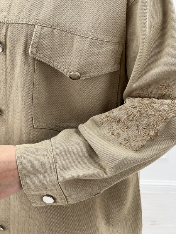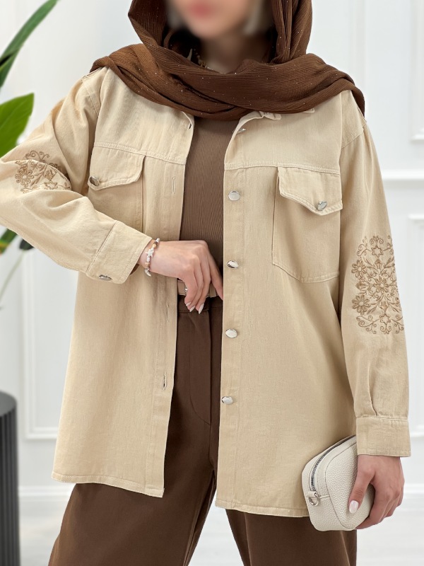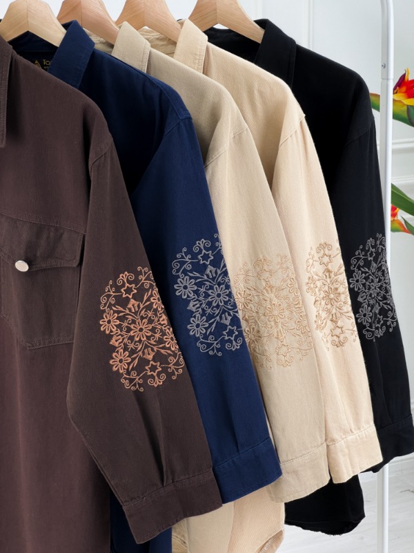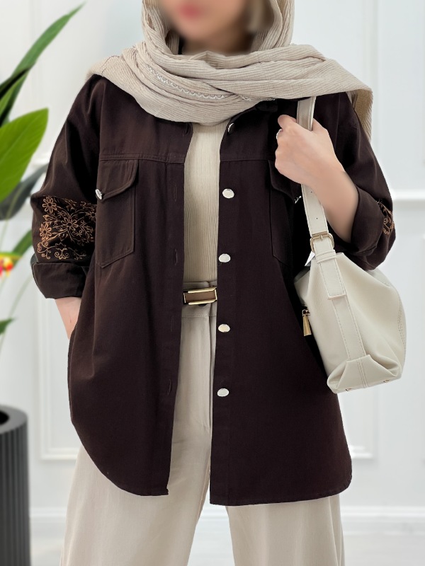 مانتو کتان زنانه با گلدوزی ظریف و طراحی یقه مردانه، مناسب استایل‌های روزمره و سایزهای ۳۸ تا ۴۶، در رنگ‌های متنوع و زیبا