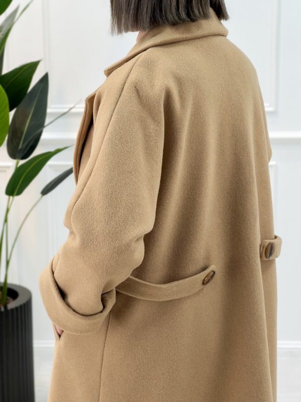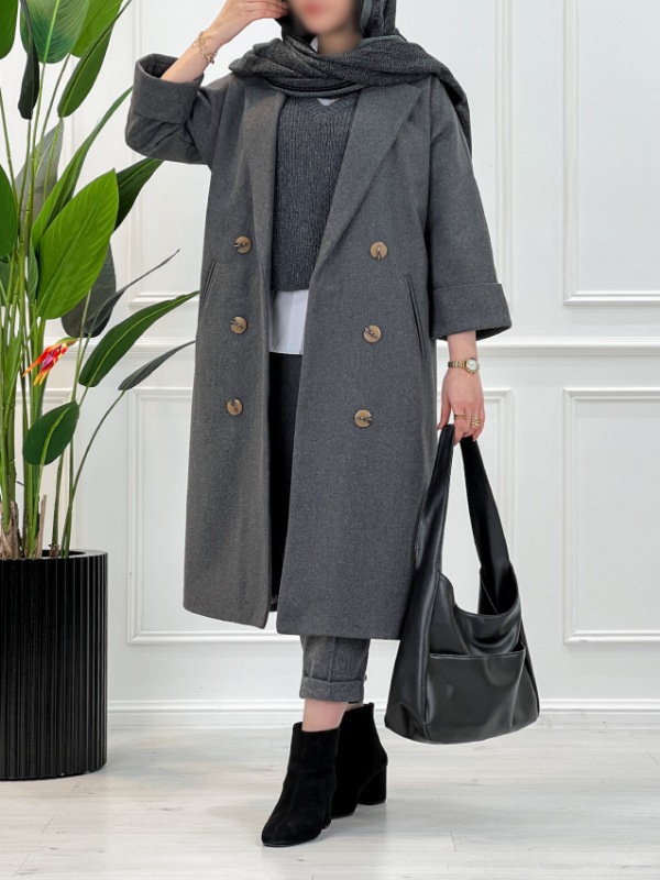 این پالتو دارای ۸ دکمه جلویی تزیینی است که به لباس جلوهای متفاوت میبخشد و دو جیب مورب دارد که علاوه بر زیبایی، بسیار کاربردی است و برای نگهداری وسایل روزانه شما مناسب است. در قسمت پشت پالتو نیز دو پاگن با دکمههای جذاب طراحی شده که به ظرافت و زیبایی لباس اضافه میکند.