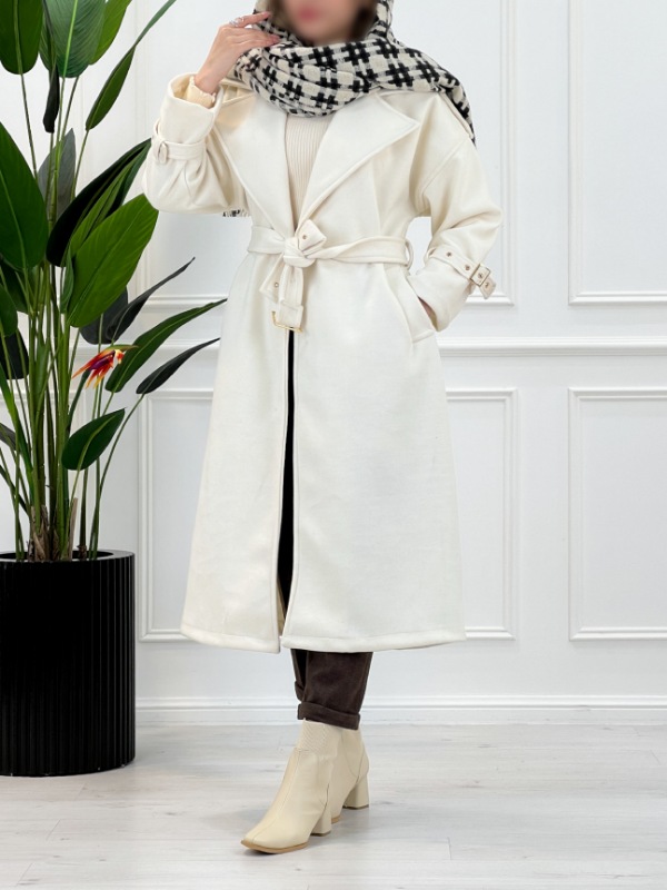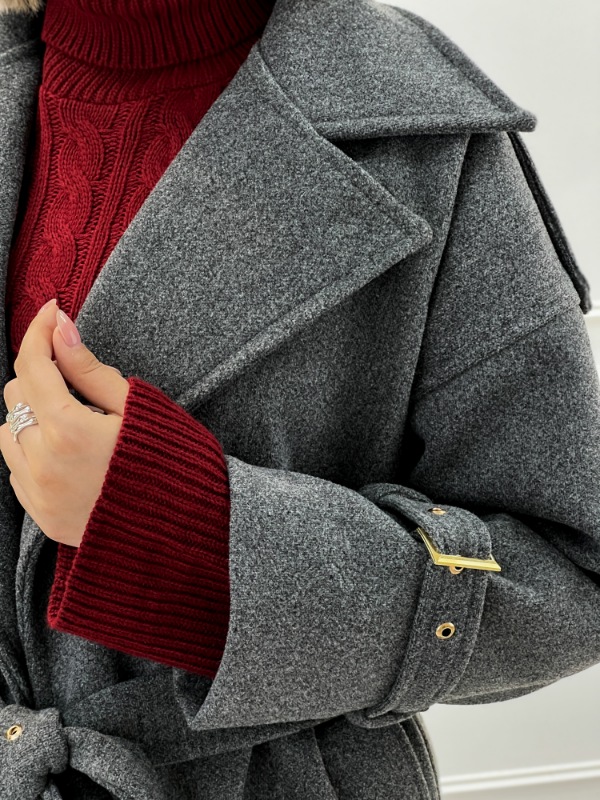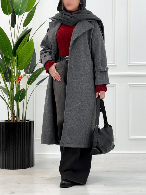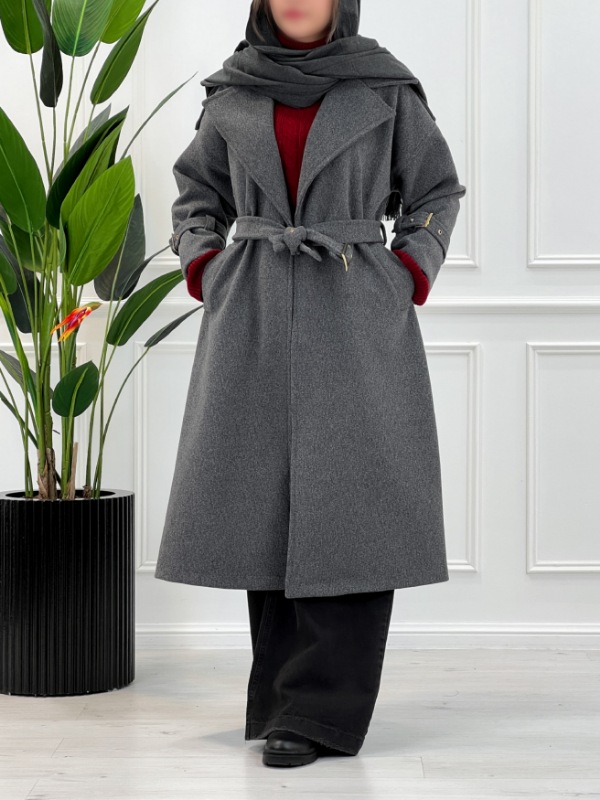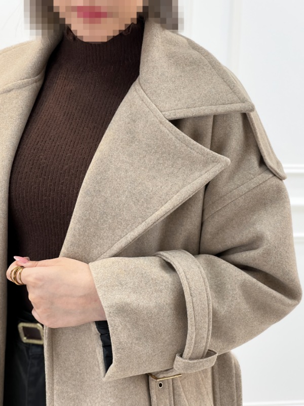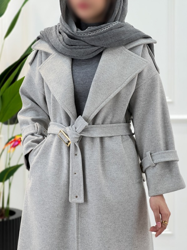 یقه انگلیسی این پالتو جلوهای کلاسیک و رسمی به ظاهر شما میدهد. مچ آستینها دارای بند قابل تنظیم با سگک هستند و کمربند جداگانهای از جنس خود پالتو نیز دارد که به کمک سگک آن میتوان سایز را تنظیم کرد. دو پل در دو طرف پالتو برای عبور کمربند طراحی شده تا فرم بهتری به تن داشته باشد.
