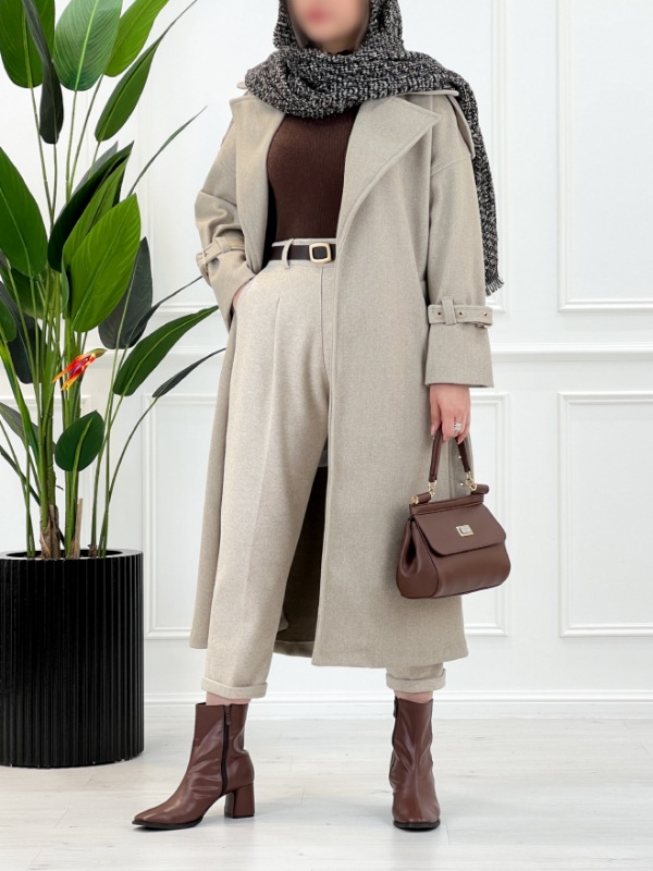 پالتو دارای دو جیب مورب کاربردی برای گرم نگه داشتن دستها یا نگهداری وسایل ضروری است. در قسمت پشت پالتو، چاکی به طول ۳۴ سانتیمتر دوخته شده تا حرکت با آن راحتتر باشد. همچنین این پالتو آستر دارد و به خوبی بدن را گرم نگه میدارد. قد آن ۱۱۶ سانتیمتر است و فری سایز بوده و مناسب برای سایزهای ۳۸ تا ۴۴ میباشد.