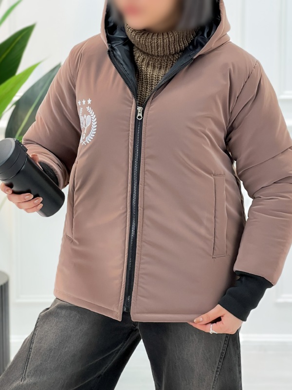 کاپشن آیلار زنانه و دخترانه با زیپ و دکمه کاربردی، آستر‌دار، دارای کلاه متصل و دو جیب، در رنگ‌های متنوع و مناسب استایل زمستانی.